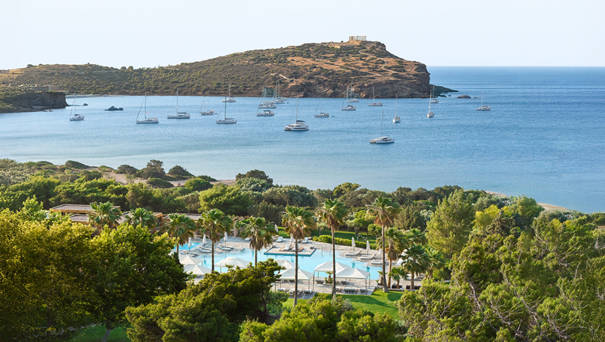 Αμφιθεατρικά χτισμένο μέσα σε καταπράσινο πευκοδάσος που φτάνει έως τη θάλασσα, το Cape Sounio βρίσκεται σε μικρή απόσταση από την Αθήνα (περίπου 40 χιλιόμετρα από το αεροδρόμιο) και προσφέρει ανεμπόδιστη θέα στον αρχαιολογικό χώρο του Σουνίου. Τα bungalows, οι σουίτες και οι βίλες του είναι σχεδιασμένα ώστε να εντάσσονται αρμονικά στο τοπίο, «στρεφόμενα» προς το Αιγαίο και τον ναό που δεσπόζει στην περιοχή εδώ και περισσότερα από 2.400 χρόνια.