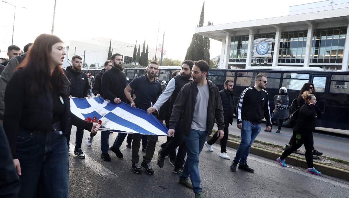 Στην αμερικανική πρεσβεία έφτασε λίγο μετά το μπλοκ των φοιτητών με την αιματοβαμμένη σημαία του Μετσοβίου