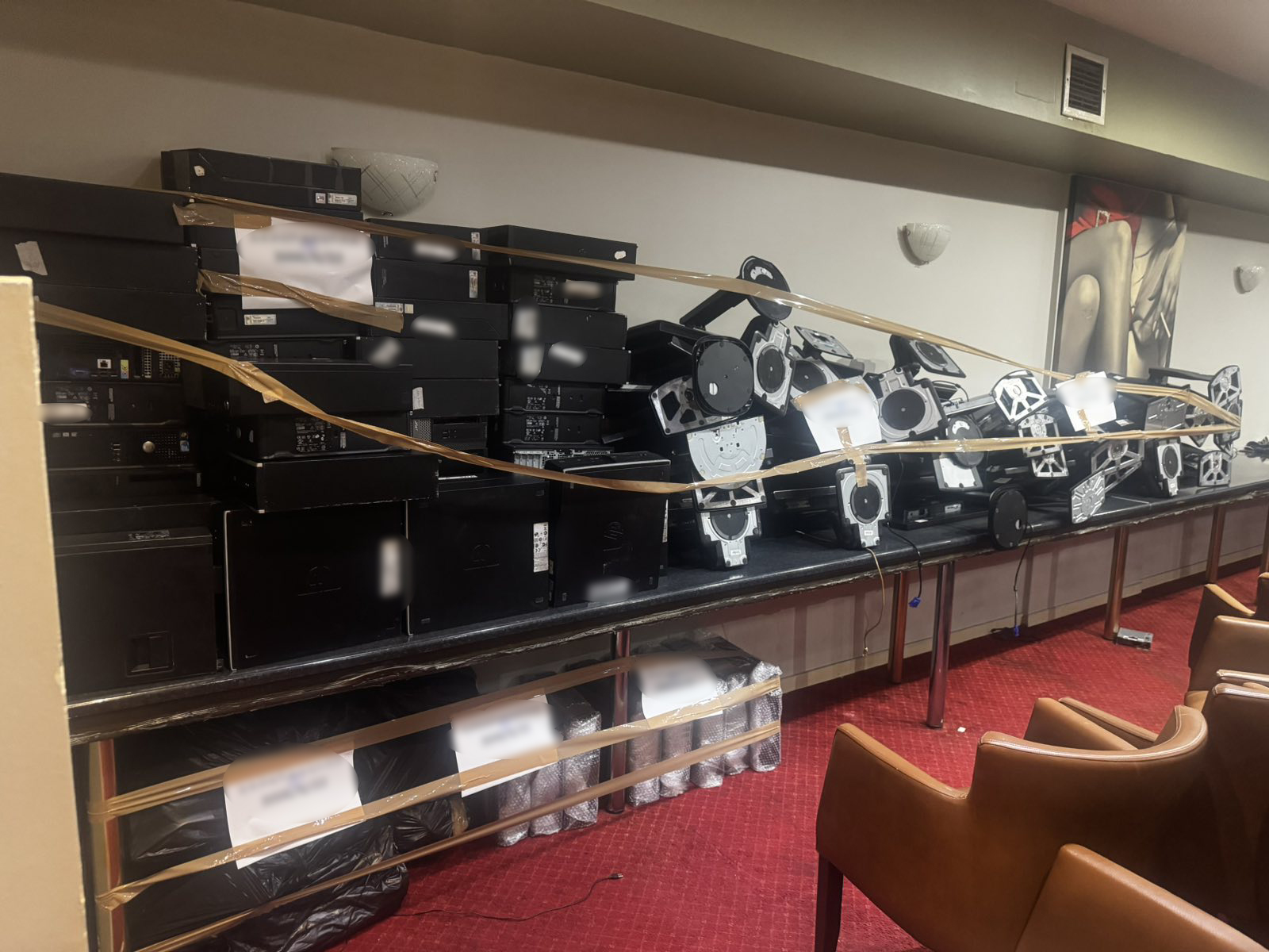 Συνολικά, από τις έρευνες σε οικίες, εμπλεκόμενα καταστήματα, πρακτορεία, τραπεζικές θυρίδες, αποθηκευτικούς χώρους, καθώς και οχήματα, βρέθηκαν μεταξύ άλλων και κατασχέθηκαν: