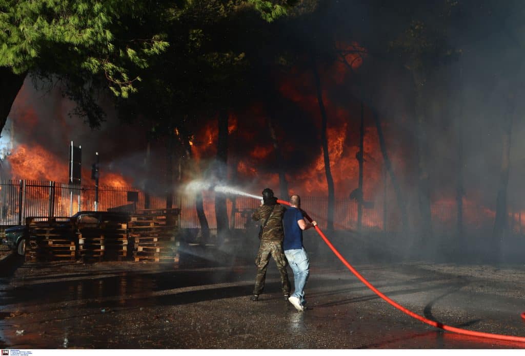 Μάλιστα στην περιοχή στις Αχαρνές που ξέσπασε η φωτιά στον υπαίθριο χώρο επιχείρησης με ξυλεία (κυρίως παλέτες) ήχησε ήδη μήνυμα 112.