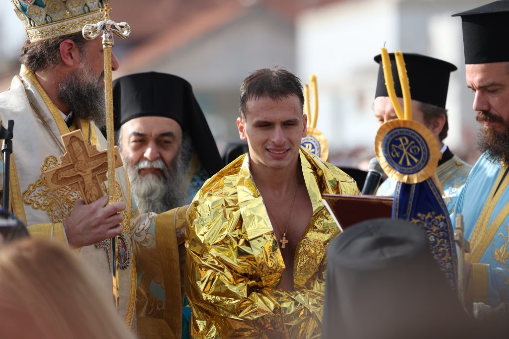 Ευλόγησε τον 23χρονο που έπιασε τον Σταυρό και του ευχήθηκε: «Να έχεις την ευλογία του Θεού. Ο σταυρός να σε φυλάει και να σε σκεπάζει και πάντοτε να είσαι γεμάτος ζωή». Ο Μητροπολίτης έδωσε δώρο στον νεαρό έναν χρυσό σταυρό και στους υπόλοιπους, που βούτηξαν, από έναν ασημένιο ως ευλογία.