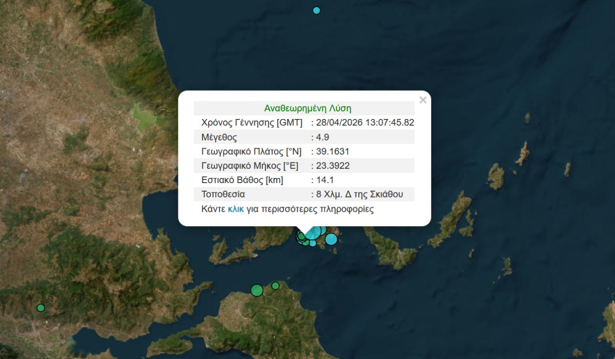 Νωρίτερα σήμερα η Σκιάθος είχε κουνηθεί από 4,7 Ρίχτερ.