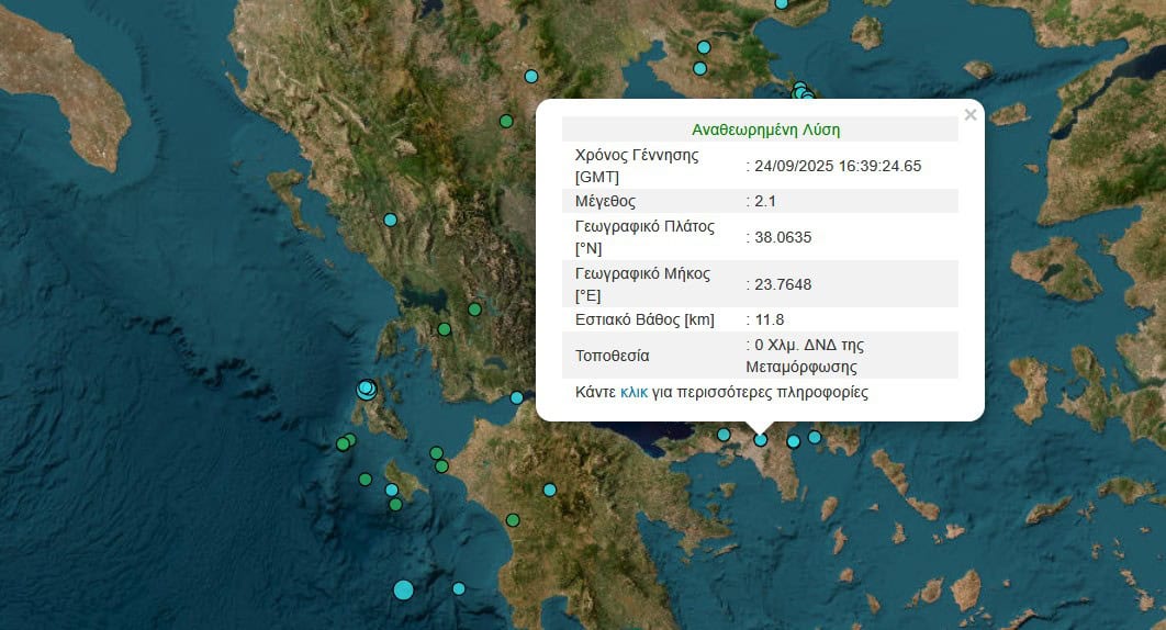 Το επίκεντρο της δόνησης ήταν στη Μεταμόρφωση. Το εστιακό βάθος ήταν 11,8 χλμ.