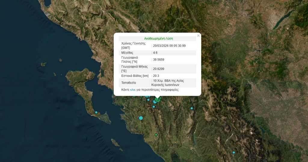 Σεισμός 4,6 βαθμών της κλίμακας Ρίχτερ σημειώθηκε στα Ιωάννινα λίγο μετά τις 11 π.μ. την Παρασκευή.