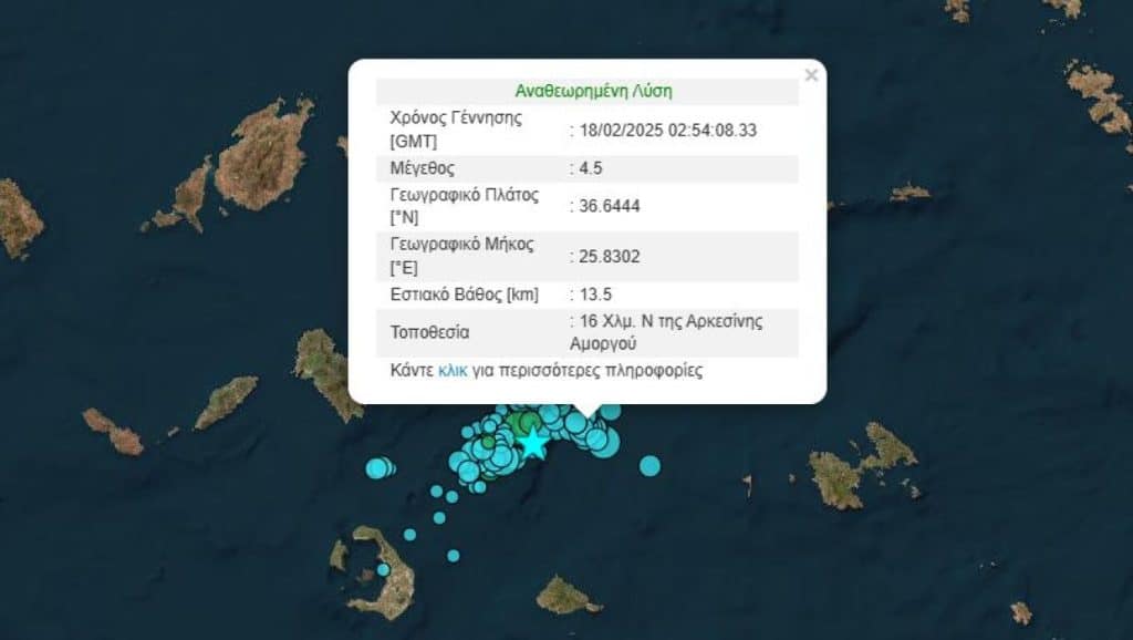 Είχε προηγηθεί σεισμός 4,5 Ρίχτερ στις 4:54 τα ξημερώματα με επίκεντρο την ίδια περιοχή.