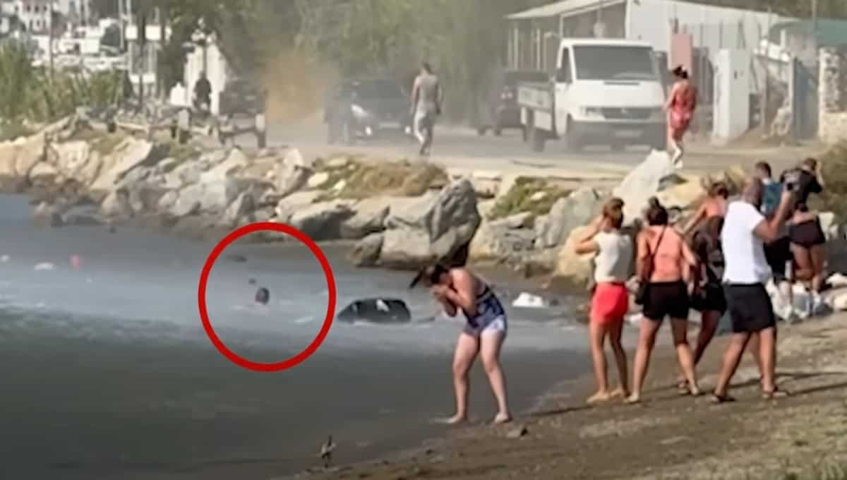 Η απίστευτη στιγμή που ο δυνατός αέρας από τουρμπίνα αεροσκάφους εκτοξεύει τουρίστα μέσα στο νερό, στη Σκιάθο, έχει γίνει viral στο διαδίκτυο.