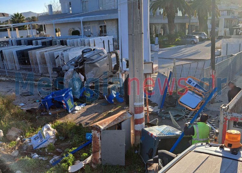 Ειδικότερα, σύμφωνα με το mesogianews.gr, κάτω από αδιευκρίνιστες συνθήκες, το αυτοκίνητο κινούμενο από Βάρκιζα προς Λαγονήσι, πέρασε στο αντίθετο ρεύμα κυκλοφορίας, ξήλωσε μία στάση αστικής συγκοινωνίας, παρέσυρε κάδους σκουπιδιών και κατέληξε αναποδογυρισμένο στα κάγκελα μιας επιχείρησης, ένα μαρμαράδικο.