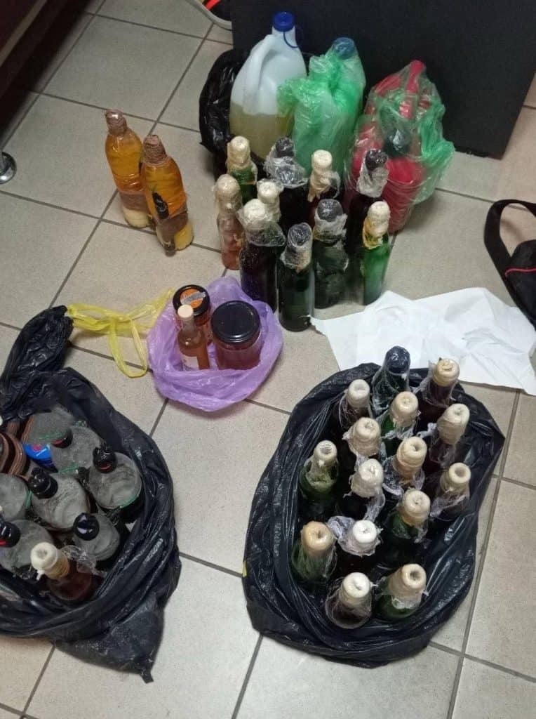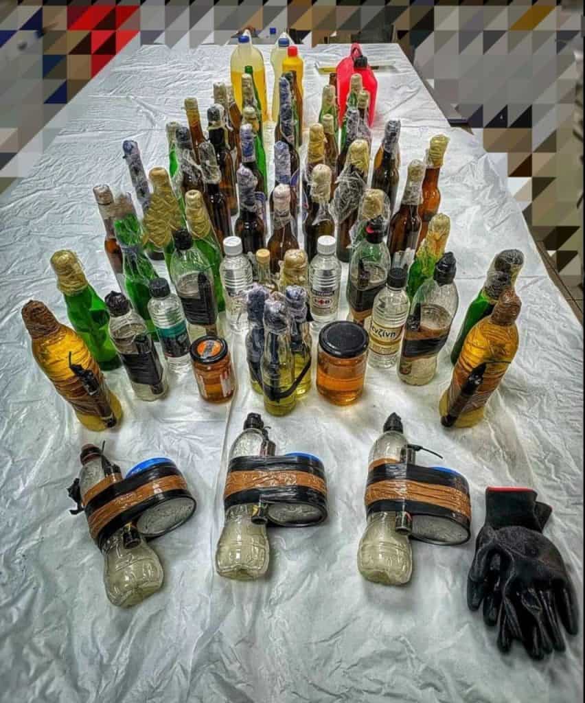 Αστυνομικοί που κλήθηκαν στο σημείο, διαπίστωσαν ότι κάποιες εξ αυτών έφεραν προσαρμοσμένες πυροτεχνικές κατασκευές και φιαλίδια βουτανίου, όπως αναφέρεται σε ανακοίνωση της ΕΛ.ΑΣ. Σε έρευνα που ακολούθησε στο σημείο βρέθηκαν επιμελώς κρυμμένα σε ειδικά διαμορφωμένο χώρο, υλικά που συνθέτουν τις αυτοσχέδιες εμπρηστικές και εκρηκτικές κατασκευές.