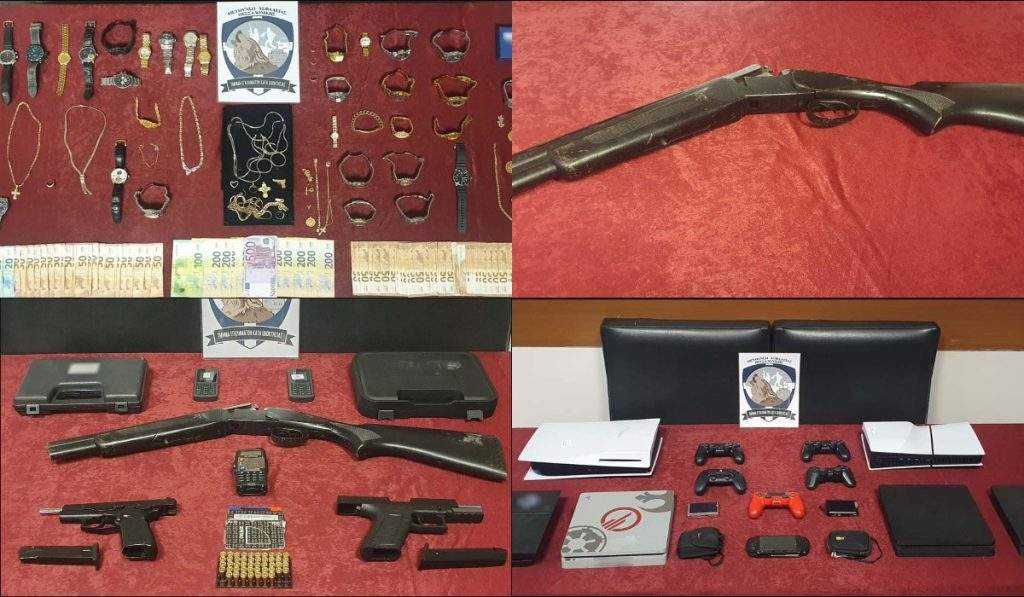 Τα πιο θεαματικά “χτυπήματα” φαίνεται να τα διέπραξε η πρώτη εγκληματική οργάνωση που σύμφωνα με τις πολύμηνες έρευνες των αστυνομικών του Τμήματος Εγκλημάτων κατά Ιδιοκτησίας της Διεύθυνσης Ασφάλειας Θεσσαλονίκης είχε τη μακροβιότερη δράση και το μεγαλύτερο περιουσιακό όφελος. Στο “παλμαρέ” της συγκαταλέγονται δύο ληστείες, δέκα διαρρήξεις κατοικιών – συνήθως σε οικίες προσώπων υψηλής οικονομικής και οικονομικής επιφάνειας απ’ όπου εξουδετέρωναν τα συστήματα ασφαλείας – και έξι κλοπές οχημάτων, με τη συνολική λεία της να προσεγγίζει το 1,5 εκατ. ευρώ. Απ’ αυτά, τα 1,1 εκατ. ευρώ προέρχονταν από κλοπή σε σπίτι στην ανατολική Θεσσαλονίκη, το Σεπτέμβριο του 2020.