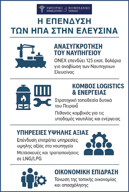 Σημαντική διάσταση αποτελεί και η σύνδεση με την ελληνική και διεθνή εφοδιαστική αλυσίδα. Η Ελευσίνα βρίσκεται σε στρατηγική θέση σε σχέση με τον Πειραιά, τις ενεργειακές υποδομές της Δυτικής Αττικής και τα δίκτυα logistics που αναπτύσσονται στο Θριάσιο. Παράλληλα, η επένδυση ανοίγει το δρόμο για νέα έσοδα από υπηρεσίες υψηλής εξειδίκευσης, όπως retrofit πράσινων τεχνολογιών, μετασκευές LNG/LPG, έργα ενεργειακής υποδομής και υπηρεσίες υποστήριξης στόλων. Η Ελλάδα αποκτά έτσι έναν πρόσθετο βιομηχανικό κόμβο που μπορεί να ανταγωνιστεί ευρωπαϊκά και γειτονικά ναυπηγεία.
