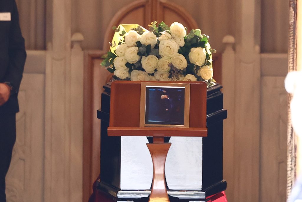 Από τους πρώτους προσήλθε και ο Γιώργος Νταλάρας, ο οποίος όπως έχει γίνει γνωστό, μαζί με την Χάρις Αλεξίου θα μνημονεύσουν μετά το πέρας της λειτουργίας την μεγάλη ερμηνεύτρια, αν και η ίδια η Μαρινέλλα είχε δηλώσει πως δεν επιθυμούσε επικήδειους λόγους.