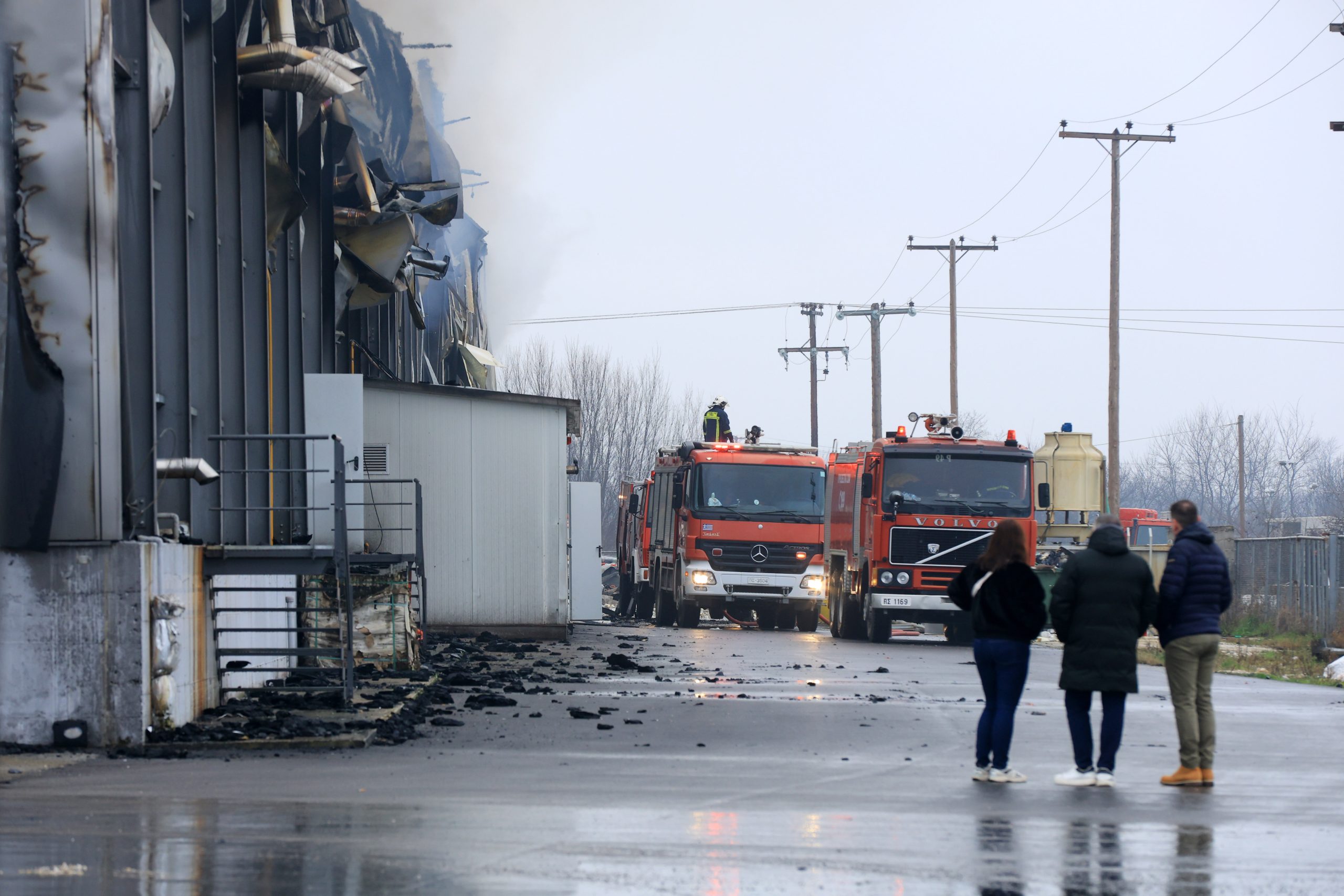 Παρόντες είναι επίσης οι ιδιοκτήτες της βιομηχανίας σε κατάσταση σοκ, καθώς και η Αντιπεριφερειάρχης Τρικάλων Χρύσα Ντιντή και ο νέος Αστυνομικός Διευθυντής Τρικάλων, Αθανάσιος Καππάς.