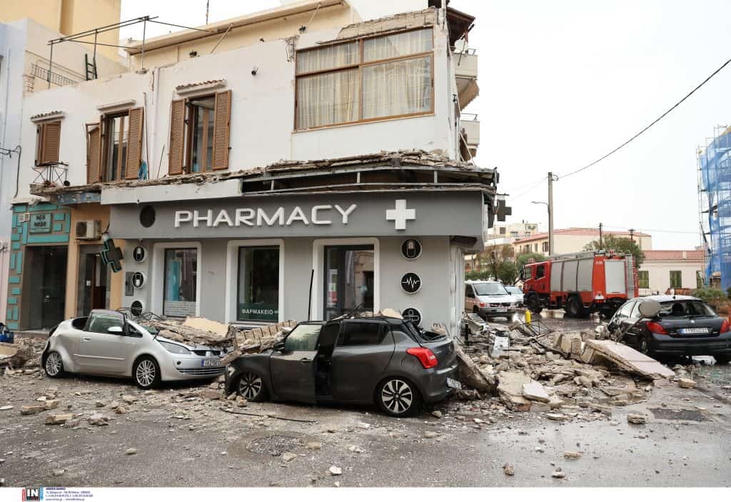 Από τα συντρίμμια προκλήθηκαν ζημιές σε σταθμευμένα αυτοκίνητα, ενώ τραυματίστηκε ελαφρά μία διερχόμενη γυναίκα που υπέστη εκδορές.