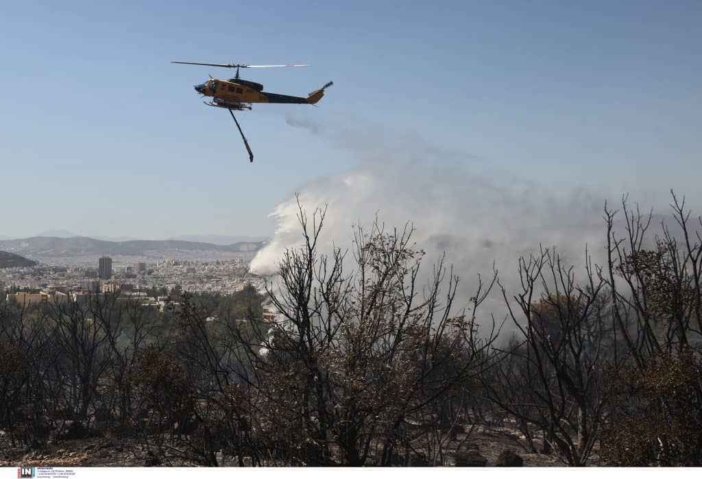 Εξαιτίας της φωτιάς έχει κλείσει και η έξοδος της Αττική Οδού προς Κατεχάκη.
