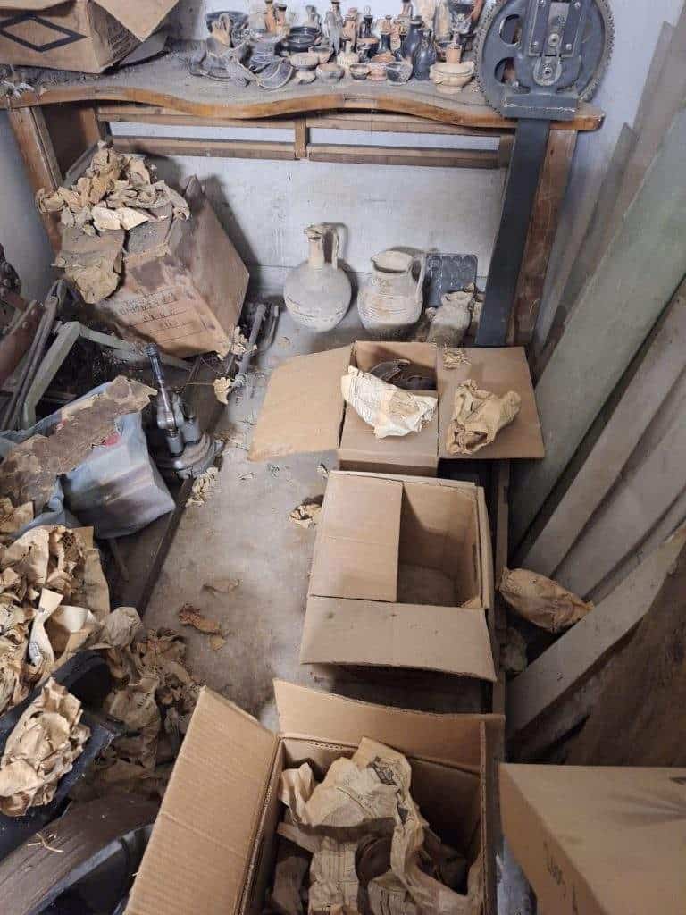 Σύμφωνα με την ανακοίνωση του ΥΠΠΟ, κατά τον εντοπισμό των αρχαίων αντικειμένων τον Φεβρουάριο του 2024, ο αρμόδιος εκπρόσωπος της Εθνικής Πινακοθήκης – Μουσείου Αλέξανδρου Σούτσου (ΕΠΜΑΣ) ενημέρωσε άμεσα το Υπουργείο Πολιτισμού για τα ευρήματα. Αρχαιολόγοι από τη Διεύθυνση Τεκμηρίωσης και Προστασίας Πολιτιστικών Αγαθών (ΔΤΠΠΑ) και το Νομισματικό Μουσείο πραγματοποίησαν αυτοψία στον χώρο. Εντοπίστηκαν και καταγράφηκαν 102 αρχαία αντικείμενα που χρονολογούνται στους γεωμετρικούς μέχρι τους ελληνιστικούς χρόνους (κύλικες, κάνθαροι, λεκανίδες, λήκυθοι, σκύφοι, ειδώλια κ.α.), 36 αντικείμενα θρησκευτικού χαρακτήρα μεταβυζαντινών χρόνων (εικόνες, ασημένιες επενδύσεις, αρχιερατική ράβδος και άλλα εκκλησιαστικά αντικείμενα), καθώς και 3.247 νομίσματα, μετάλλια, σφραγιδόλιθοι, σταθμία, μολυβδόβουλα που χρονολογούνται από τους αρχαίους έως τους νεώτερους χρόνους.