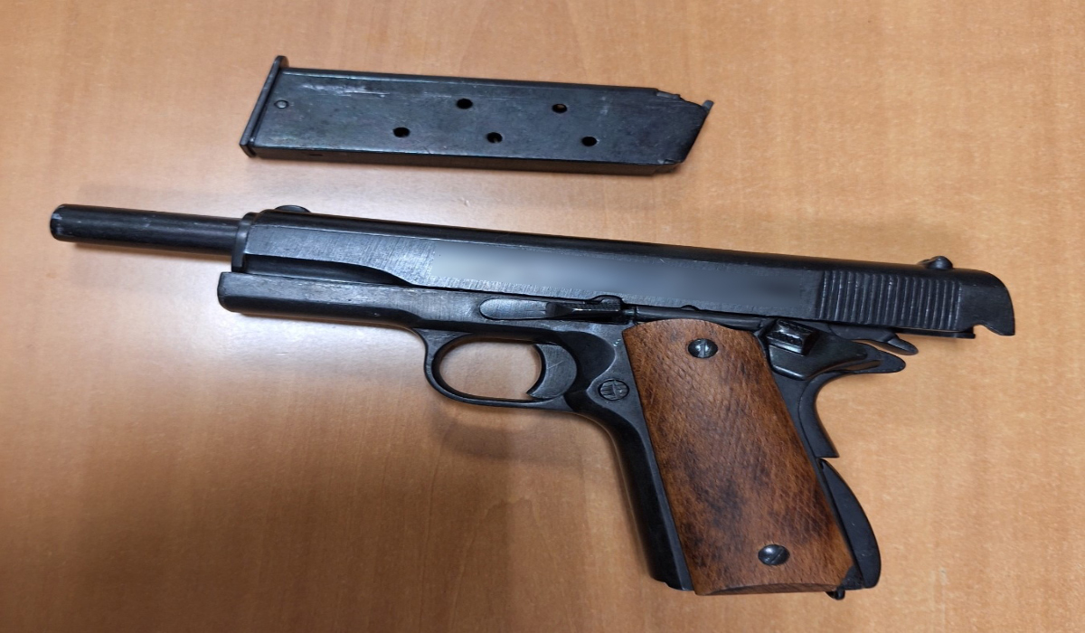 Στη θέα των αστυνομικών, ο κατηγορούμενος επιχείρησε να διαφύγει ενώ κατά την ακινητοποίηση του αντιστάθηκε με τα χέρια του και κατά τον σωματικό του έλεγχο, βρέθηκε στην κατοχή του και κατασχέθηκε, πιστόλι με γεμιστήρα.