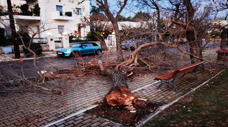 Οι δυνατοί άνεμοι προκάλεσαν πτώσεις δέντρων σε διάφορες περιοχές του λεκανοπεδίου.