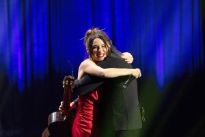 Δύο αγαπημένες φίλες της Μαριάννας Τουμασάτου, της έκαναν την πιο όμορφη έκπληξη. Η Πέγκυ Ζήνα τραγούδησε το “Hotel California” των The Eagles, τραγούδι που η Μαριάννα Τουμασάτου έχει συνδέσει με τις πιο σημαντικές στιγμές της ζωής της και στη σκηνή εμφανίστηκε μία επιστήθια φίλη της, η ηθοποιός Υρώ Λούπη. Από τις πρώτες κιόλας νώτες, η αγαπημένη ηθοποιός συγκινήθηκε ενώ όταν εμφανίστηκε η Υρώ Λούπη, δεν μπόρεσε να συγκρατήσει τους λυγμούς της.