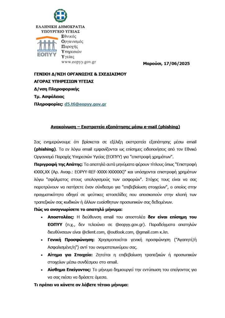 Η ανακοίνωση του ΕΠΟΠΥΥ