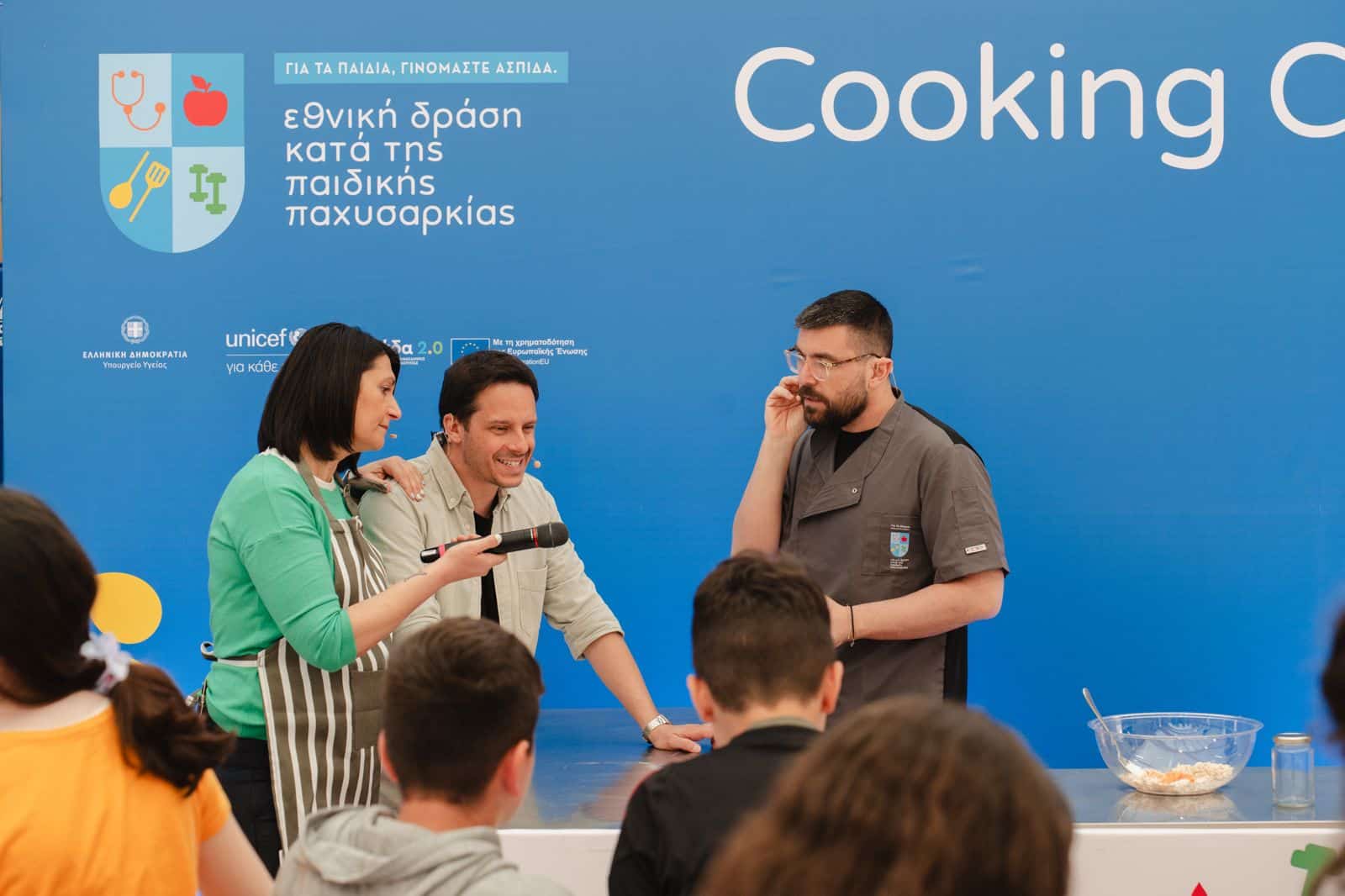 Ο Δημήτρης Μακαλιάς και η Ελευθερία Μπενοβία υποδέχτηκαν τα παιδιά με ένα θερμό καλωσόρισμα και διαδραστικά παιχνίδια. Στη συνέχεια, το πρόγραμμα περιλάμβανε δραστηριότητες όπως ένα live cooking workshop, γεμάτο υγιεινές και γευστικές προτάσεις, με τον chef Γαβριήλ Νικολαΐδη, τη διαιτολόγο-διατροφολόγο Μελίνα Καριπίδου και τη συμμετοχή των παιδιών.
