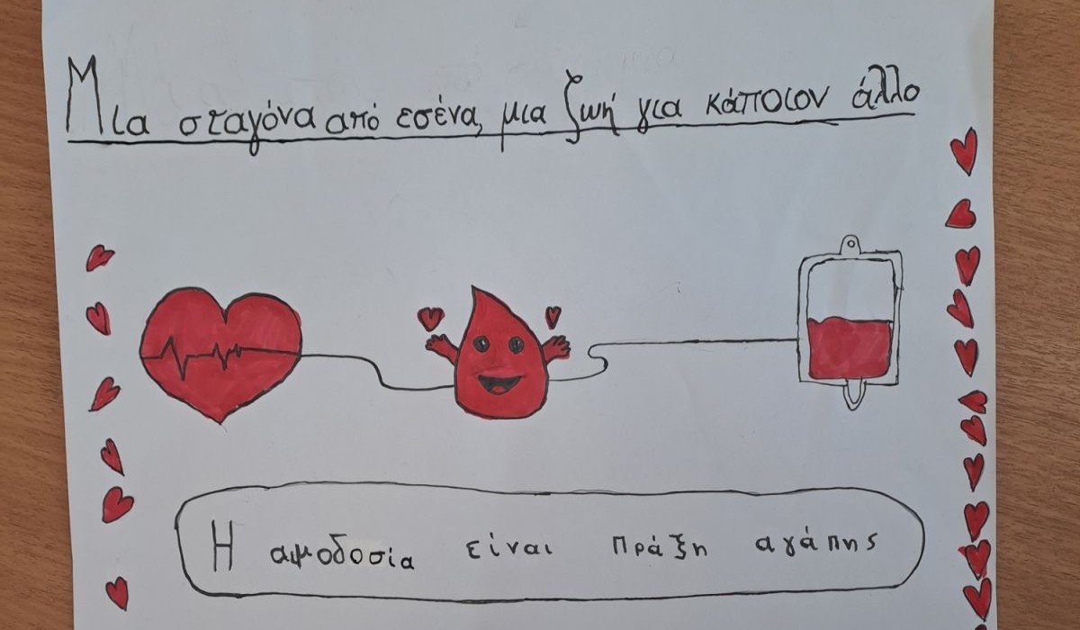 Δεκαπέντε δημοτικά σχολεία της ανατολικής Θεσσαλονίκης αποφάσισαν να ενώσουν δυνάμεις για έναν ιδιαίτερα καλό σκοπό. Την Κυριακή 25 Ιανουαρίου θα διοργανώσουν εθελοντική αιμοδοσία, με στόχο οι δάσκαλοι και οι γονείς να γίνουν αιμοδότες, συγκεντρώνοντας όσο το δυνατό περισσότερες φιάλες αίματος. Παράλληλα, οι μαθητές και οι μαθήτριες, μέσα από προσωπικές τους ζωγραφιές, ποιήματα, παραμύθια, θεατρικά δρώμενα ακόμη και επιτραπέζια παιχνίδια θα στείλουν το μήνυμα: «Δίνω αίμα – Μοιράζομαι ένα δώρο ζωής».
