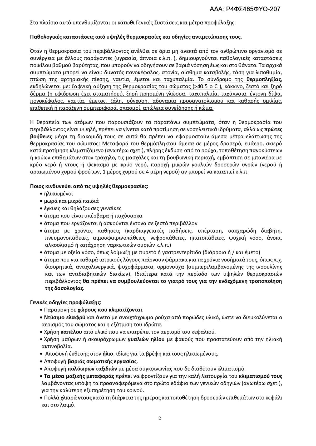 - Αποφυγή έκθεσης στον ήλιο, ιδίως για τα βρέφη και τους ηλικιωμένους.